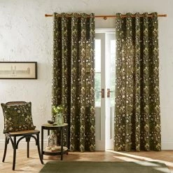Elevated by a natural background, the Arboretum Eyelet Curtains feature a beautifully detailed design. A siskin, nuthatch and lesser spotted woodpecker rest amongst a plethora of leaves, branches and acorns which will bring the woodlands into your home. The pattern has been printed onto a polycotton face fabric and lined with a striped cotton rich lining. The lining will help preserve the design and front fabric from fading, making these curtains long-lasting. Complete with a durable brushed steel eyelet header, these curtains are designed for use with a curtain pole. Coordinate the curtains with the matching cushion for a stylish room look.