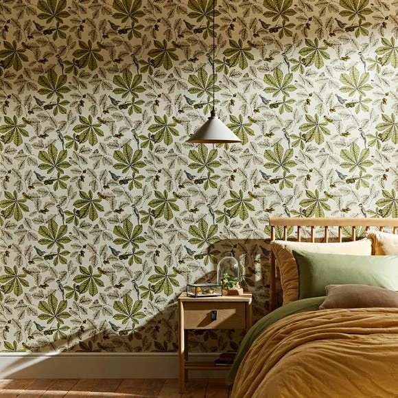 Designed with matt, water-based inks, this wallpaper features woodland icons such as the leaves of the English oak tree and the Lesser spotted woodpecker that will make a statement in any room. Easy to hang, this wallpaper has a paste the paper application.