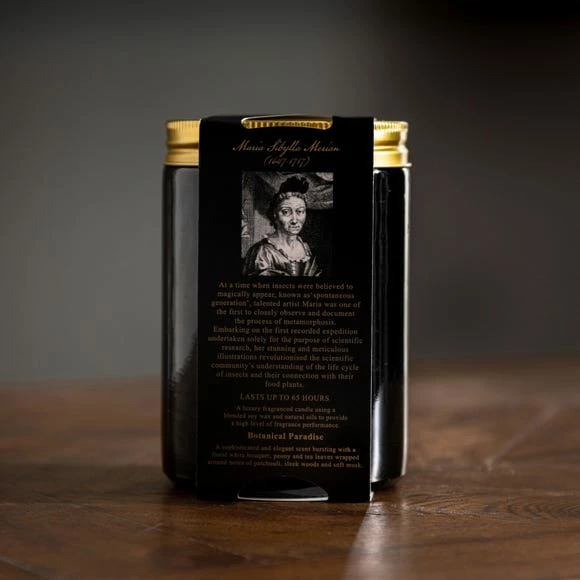 - Fragrance name is Botanical Paradise – Maria Sibylla Merian – through her meticulous illustrations, Maria was one of the first to closely observe and document the process of metamorphosis