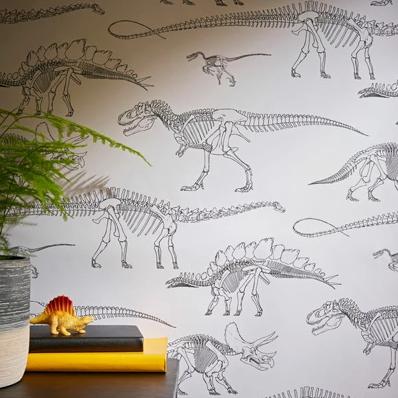 The Fossil Forager White Wallpaper has been designed with kids in mind. We’ve come together to create some extra special designs inspired by the Museum and its enormous, astonishing and mind-blowing dinosaur and oceanic collections! We’re on a mission to celebrate the wonder of nature so every piece in this collection has been designed to utilise our resources in the best way possible, to be respectful of the natural world and help protect its future.