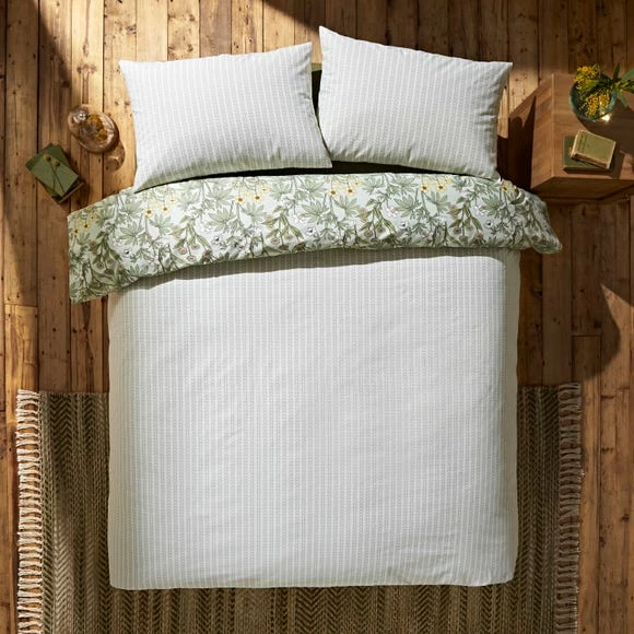 Bring a beautiful meadow inspired design into your bedroom for a fresh look this season. Florals cascade across the front of this duvet cover set with a striped design being featured on the reverse. Crafted from a soft touch 100% cotton material, the set is easy to care for and is fully machine washable. The duvet cover set has been finished with a button closure which helps secure the cover around the duvet whilst in use.