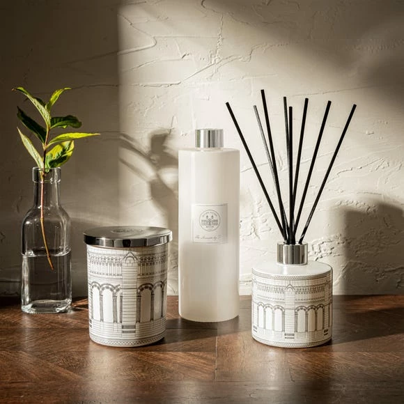 The Day Diffuser Refill 360ml is part of the Signature collection. This very special collaboration has been influenced by the Natural History Museum’s incredible building. First opened in 1881, the Museum is now considered a work of art in its own right. Alfred Waterhouse, a young architect from Liverpool, used a mixture of Gothic Revival and twelfth-century Romanesque-style architecture, in line with Museum founder Sir Richard Owen’s vision of creating a ‘cathedral to nature’. Taking inspiration from the Museum’s unique architectural details and unmistakable Victorian décor, our contemporary collection makes it possible to bring a piece of natural history into your home.