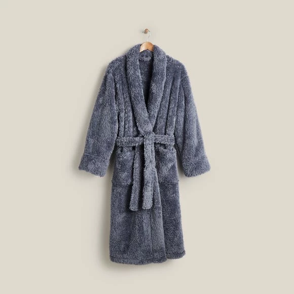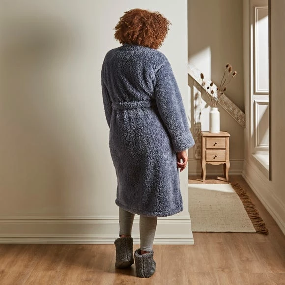 Perfect as a gift this cosy and warm bath robe has been beautifully crafted with a super soft teddy fabric and complete with a shaggy texture for added comfort. The gown features two deep pockets and fastens with a self-tie belt. This bath robe is available in a range of sizes and colours. Matching slippers are also available.